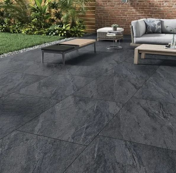 Currently available in large 900x600mm & 600x600mm slabs, R11 non-slip rating, 20mm thick vitrified porcelain.