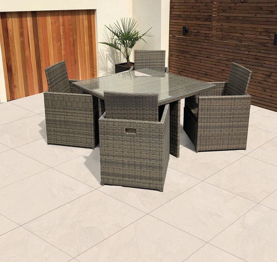 Currently available in large 900x600mm & 600x600mm slabs, R11 non-slip rating, 20mm thick vitrified porcelain.